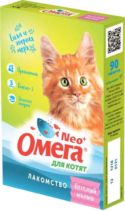 Омега Neo+ — вкусное и полезное лакомство для поощрения, баловства и поддержания здоровья котят в период активного роста