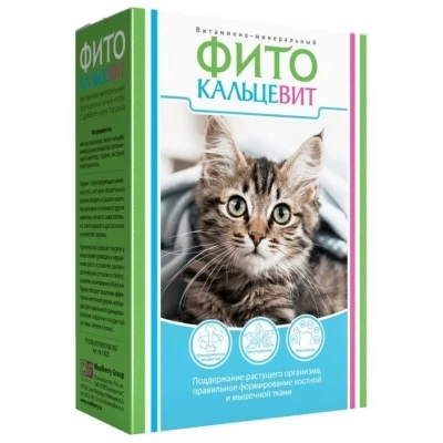 Комплексный препарат, в состав которого входят мясо-костная мука, рыбная мука, глюконат кальция, минеральные вещества, витамины, таурин, лекарственное растение Polyscias filicifolia. Фитокальцевит выпускается в форме порошка бежевого цвета с белыми вкраплениями глюконата кальция, с приятным специфическим запахом.
