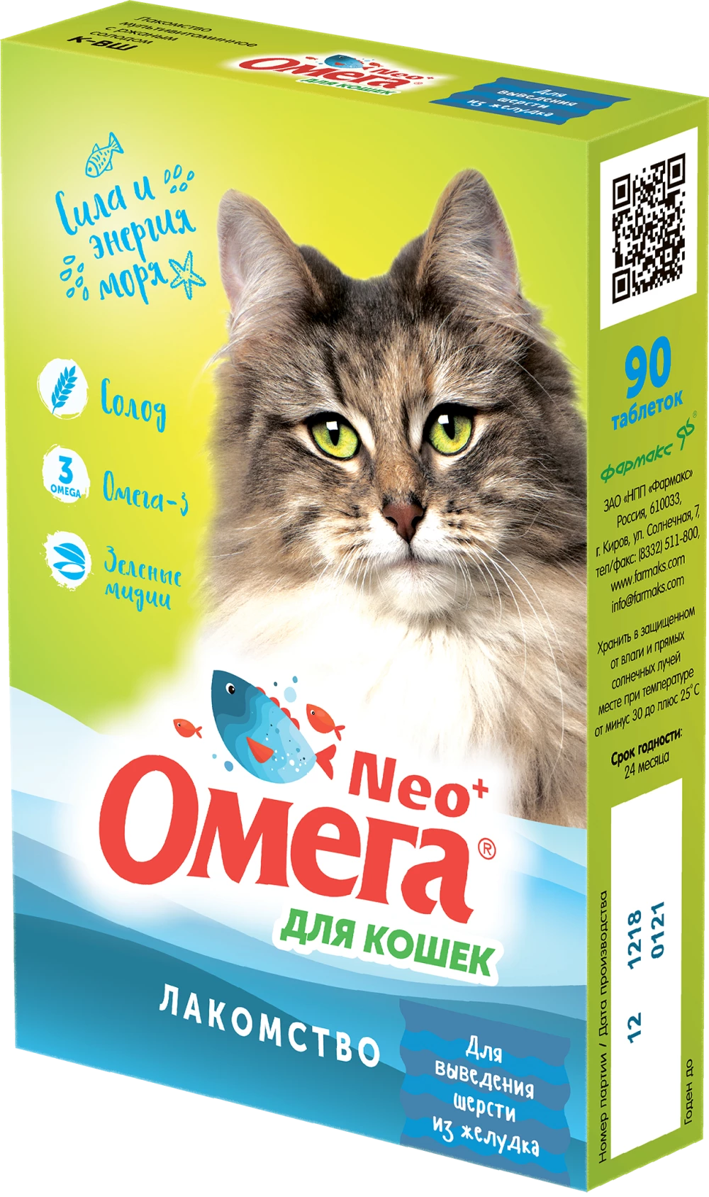 Омега Neo+ — вкусное и полезное лакомство для поощрения, баловства и выведения комков шерсти из желудка кошек