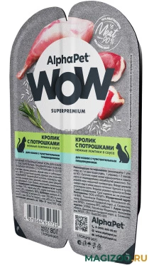 Влажный полнорационный корм для AlphaPet WOW Superpremium кошек с чувствительным пищеварением с нежными ломтиками кролика с потрошками в соусе.