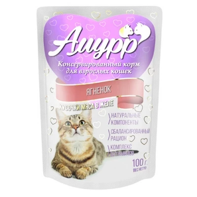 Влажный корм для кошек Амурр Ягненок в желе 100 гр