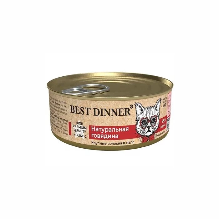 Мясные консервы для кошек Best Dinner – это продукты наивысшего качества, обладают изысканным вкусом, сбалансированным составом для правильного питания и здоровой жизни кошки. Изготовлены только из натуральных компонентов без искусственных красителей, консервантов и ароматизаторов. Состав: Говядина, таурин, желирующая добавка, соль, вода питьевая.