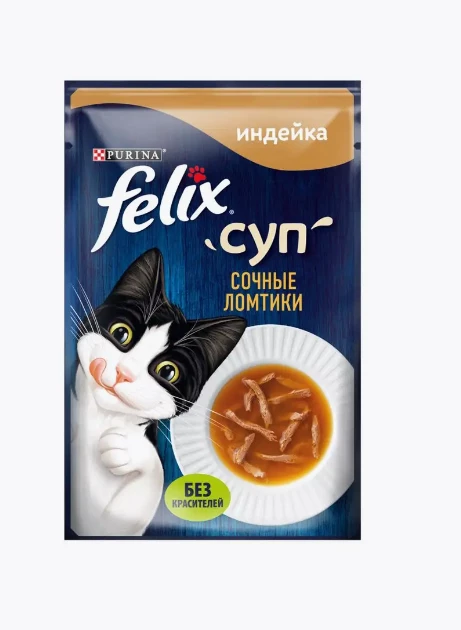 Сочные Ломтики - вкусное дополнение к ежедневному рациону, которое внесет разнообразие в питание Вашего любителя вкуснятины! Он по достоинству оценит нежные тонко нарезанные ломтики в большом количестве ароматного бульона! Ингредиенты: мясо и мясные ингредиенты (включая индейку), экстракты растительного белка, аминокислоты, загустители, сахара, рыба и продукты ее переработки, минеральные вещества, продукты переработки растительного сырья, дрожжи. Гарантированные показатели: влажность: 87,5%; белок: 7,5%; содержание жира: 1,5%; сырая зола: 1,8%; сырая клетчатка: 0,2%.