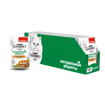 Природа вдохновляет шеф-поваров лучших ресторанов на создание блюд из натуральных ингредиентов, а вдохновленные природой эксперты разработали для кошек с избирательными предпочтениями коллекцию блюд Гурмэ Натуральные рецепты. Корм для взрослых питомцев «Натуральные рецепты» — это блюда из отборных натуральных ингредиентов высокого качества. Сочетания приготовленных на пару мясных компонентов с овощами тщательно подобраны экспертами и оптимально дополняют друг друга по вкусу и пользе. Корм для кошек от Гурмэ полнорационный, содержит все необходимые для здоровья микронутриенты. Влажный корм с богатой вкусовой палитрой не оставит равнодушным Вашего взыскательного гурмана. Комбинация белков и углеводов обеспечивает энергией. Клетчатка благотворно влияет на работу пищеварительной системы. Натуральные ингредиенты и восхитительный вкус. Влажные корма Гурмэ не содержат искусственных ароматизаторов и консервантов