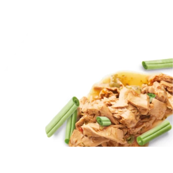 Состав- рыба и продукты переработки рыбы* (лосось 14%), экстракты растительного белка*, мясо и мясные ингредиенты*, минеральные вещества, овощи* (зеленая фасоль и томаты), аминокислоты, продукты переработки растительного сырья, загустители*, сахара, витамины.