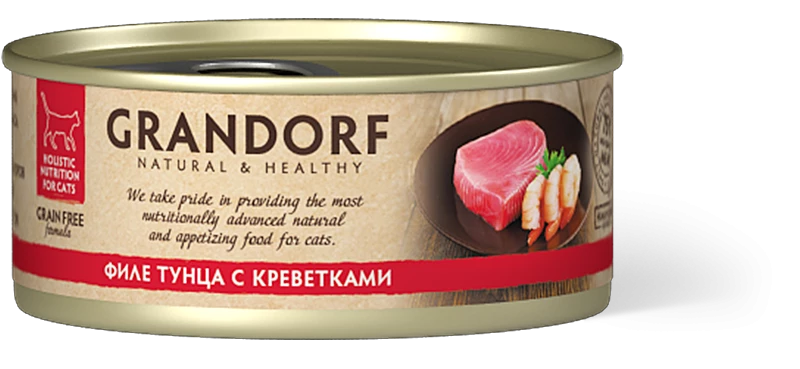 Состав: 60% филе тунца, 15% креветки, 25% собственный сок, 0% зерновых