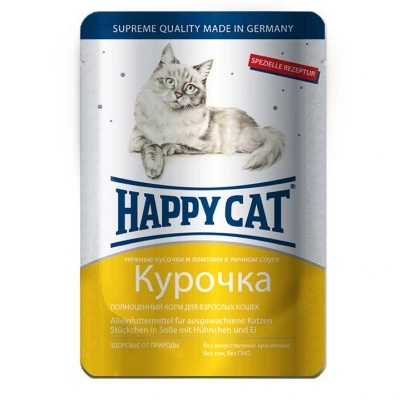 Деликатесный корм Happy Cat курочка кусочки и ломтики в яичном соусе обеспечивает правильное и разнообразное питание кошки. Этот вкусный и натуральный корм содержит качественно отобранные ингредиенты, чтобы порадовать даже самую привередливую кошку. Уникальная технология приготовления позволяет сохранить все ценные свойства натуральных продуктов, чтобы ваш питомец был здоров и полон сил.