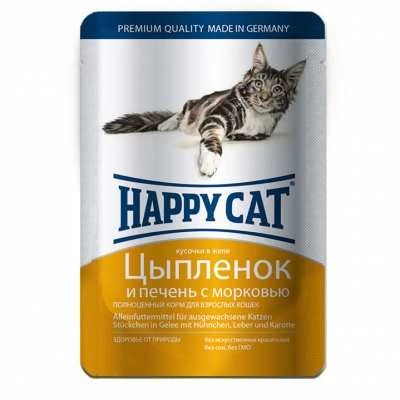 Полноценный корм Happy Cat Цыпленок и печень с морковью кусочки в желе обеспечивает правильное и разнообразное питание кошки. Этот вкусный и натуральный корм содержит качественно отобранные ингредиенты, чтобы порадовать даже самую привередливую кошку. Уникальная технология приготовления позволяет сохранить все ценные свойства натуральных продуктов, чтобы ваш питомец был здоров и полон сил.
