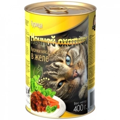 Влажный консервированный корм для кошек Ночной охотник Курица в желе 415гр