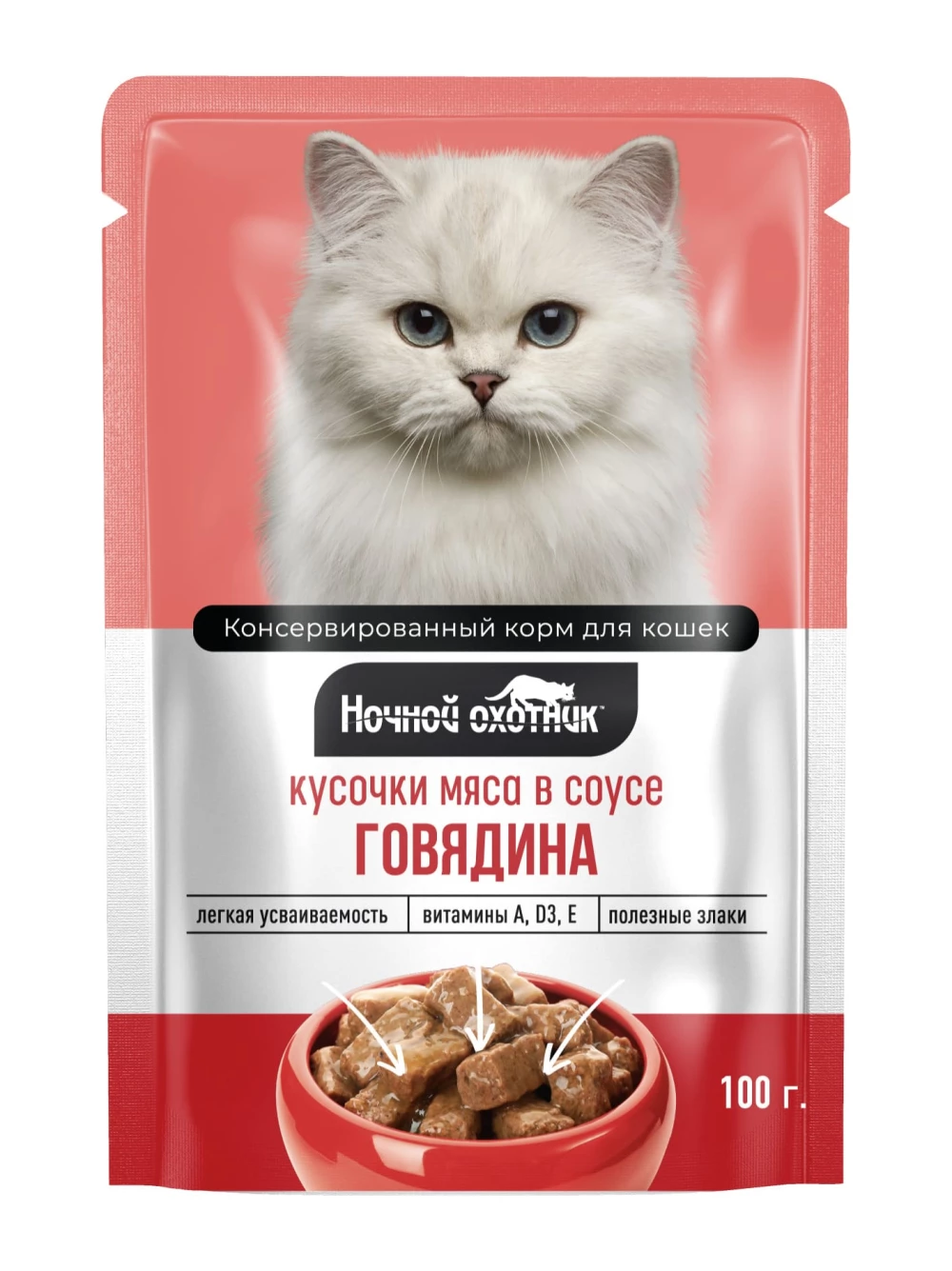 Состав: Говядина (не менее 10%), мясо и субпродукты, злаки, растительное масло, минеральные вещества, таурин, витамины А, D, E (tocopherol).