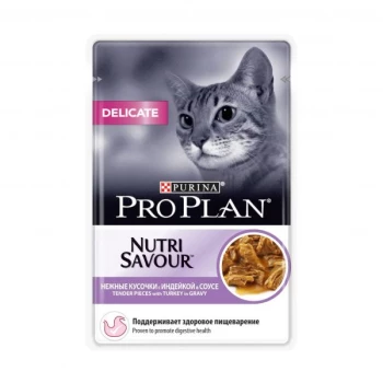 Качественные ингредиенты способствуют тщательному перевариванию пищи. Помогает уменьшить кожные реакции, связанные с пищевой непереносимостью. Нежные кусочки с индейкой в пикантном соусе очень привлекательны для кошек благодаря запатентованной технологии производства департамента PURINA компании Nestle. Доказано: способствует улучшению пищеварения благодаря содержанию инулина, пребиотика, который помогает сбалансировать кишечную флору кошек с повышенной чувствительностью.