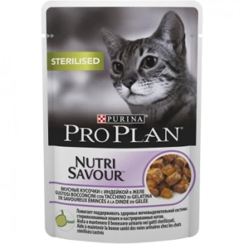 Для взрослых стерилизованных кошек и кастрированных котов. Нежные кусочки с индейкой в соусе. Поддерживает оптимальный вес кошки. Содержит антиоксиданты для естественной защиты организма.