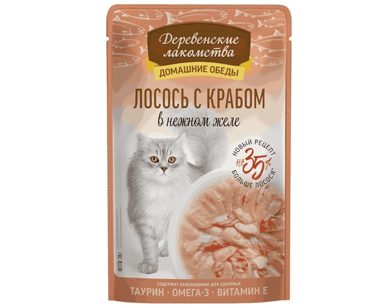 Консервированный влажный корм для кошек серии «Деревенские лакомства — Домашние обеды» — изысканный морской деликатес, созданный с любовью и заботой о вашем пушистом друге. Угощение не только порадует вашего кота, но и внесет разнообразие в его рацион. Бережно отобранные ингредиенты, без добавления консервантов и красителей, делают это блюдо безопасным и приятным для вашего любимца. Легкая текстура желе облегчает процесс потребления, делая этот продукт идеальным даже для самых привередливых питомцев.