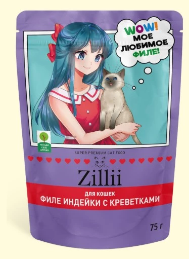 Рецептура «ZILLII для взрослых и стерилизованных кошек. Мясные волокна в желе индейка с креветками» придется по вкусу Вашей кошке и поможет ей ощутить себя настоящим хищником, готовым к новым приключениям в Вашей общей истории.