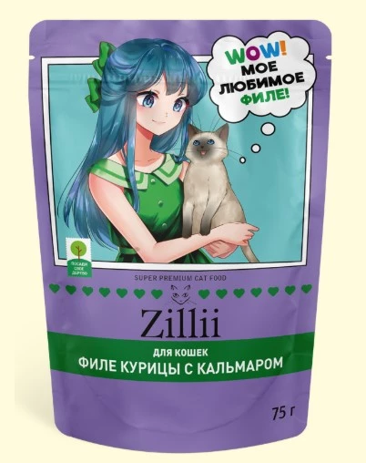 Рецептура «ZILLII для взрослых и стерилизованных кошек. Мясные волокна в желе курица с тунцом» придется по вкусу Вашей кошке и поможет ей ощутить себя настоящим хищником, полным внутренней силы и грации. Филе «ZILLII Мясные волокна в желе курица с кальмаром» - это чистое мясо, которое требуется Вашему домашнему хищнику, чтобы не только получать необходимые питательные вещества для ежедневной «охоты», но и настоящее лакомство для истинного гурмана, которое заставляет их его умиротворенно мурлыкать после такой трапезы.