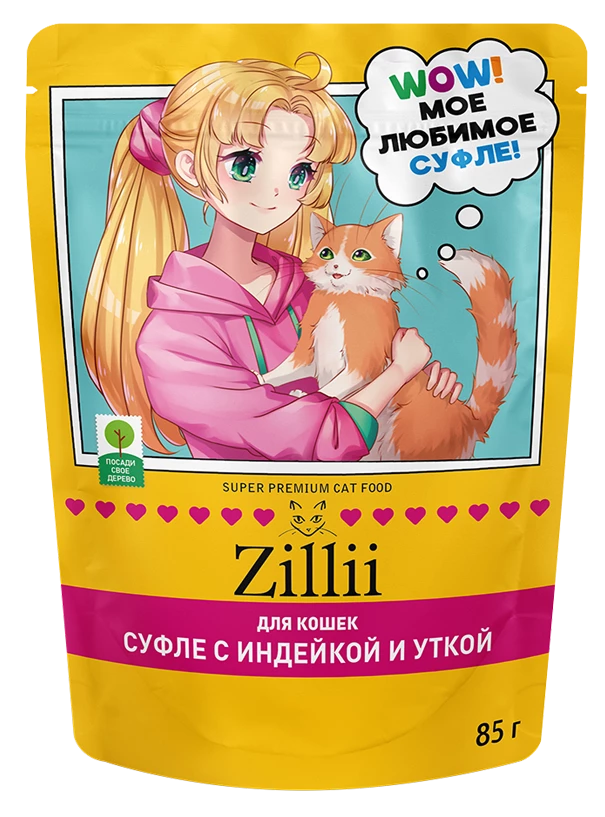 Влажный корм для взрослых кошек Zillii (Зилли) Индейка/Утка суфле пауч 85гр
