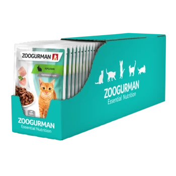 Зоогурман. Корм консервированный полнорационный для взрослых кошек с кроликом. «Кролик» Для кожи и шерсти. Кусочки в соусе.