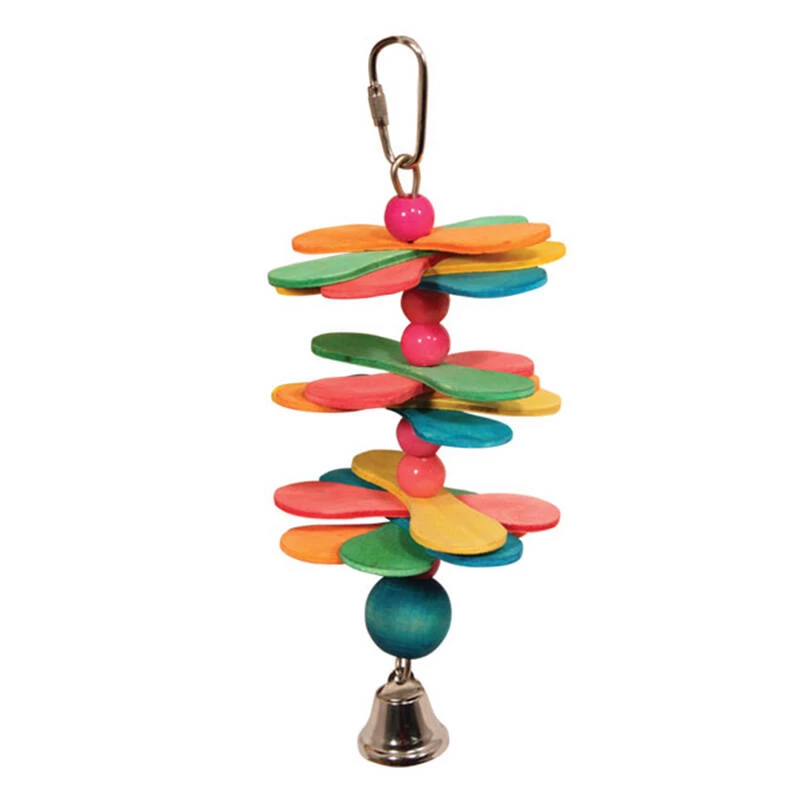 Игрушка для птиц в виде подвески с разноцветными лепестками ромашки и колокольчиком. Крепление:карабин. Цвет: в ассортименте. Размер: 190/220*80мм.