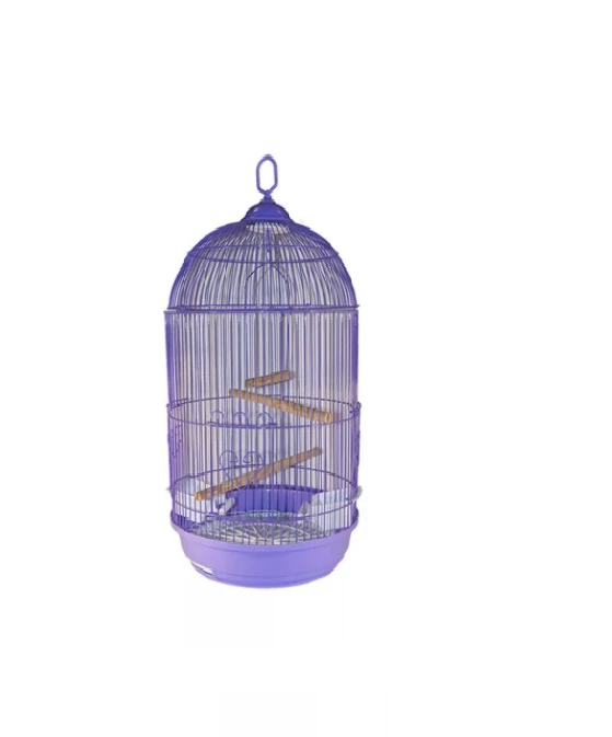 Просторная круглая клетка для птиц Содержание: 2 кормушки ,2 жердочки, качеля Цвета: в ассортименте Размер: 42*83