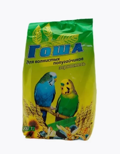 Полноценный корм для волнистых попугаев попугаев ГОША состоит из тщательно отобранных натуральных зерен. Важнейшие питательные вещества, входящие в состав корма: обеспечивают отличное усвоение корма, повышают иммунитет попугаев, обеспечивают полноценную жизнедеятельность ваших питомцев. Рекомендации по применению: следите за тем, чтобы у попугая было достаточно корма и воды. Очищайте кормушку от шелухи, прежде чем насыпать новую порцию корма.
