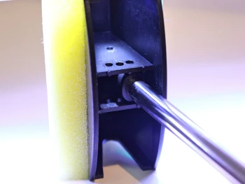 На нём есть три рабочих поверхности: поролоновая губка, жесткая губка и резиновый скребок.