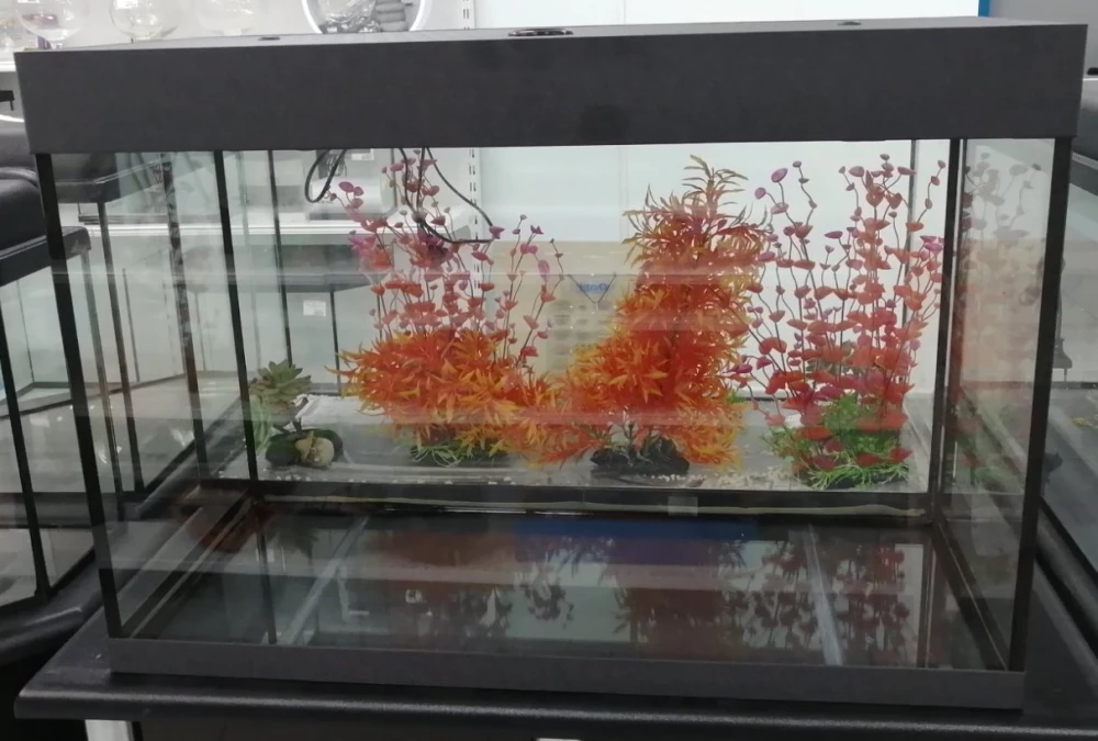 Аквариум выполнен из высококачественного стекла, благодаря евро кромке имеет высокую защиту от трещин, сколов, что повышает степень безопасности при эксплуатации. Также крышка надежно защищает аквариум от пыли, основным преимуществом аквариума является его простота в установке и уходе. Он легко чистится и моется и может быть установлен в любом месте дома или офиса.