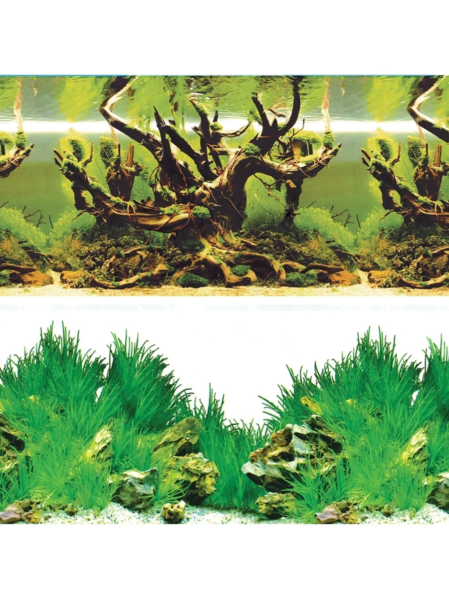 Двусторонний аквариумный фон на ламинированной бумаге с красочными фотографиями подводного мира. Фон для аквариума - это тот самый декоративный элемент, который не только скроет за собой все внешнее аквариумное оборудование, но и придаст аквариуму привлекательный внешний вид. Пленочные фоны - идеальное решение для вашего аквариума. Пленка с рисунком либо однотонная пленка клеится на заднюю стенку снаружи, так что в любой момент ее можно заменить. Если сам по себе аквариум не имеет особой привлекательности, то его можно украсить фоном с изображением подводного ландшафта. Если же дизайн аквариума не подразумевает применение цветного фона, идеальным решением будет однотонная пленка.