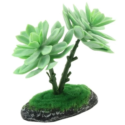 Растения - это не только завершающий штрих в оформлении, но и необходимый атрибут любого террариума. Они дают укрытие и тень, по ним животное может перемещаться, они придают трехмерность внутреннему пространству террариума. Пластиковое растение на подставке из полиэфирной смолы с напылением в виде искусственного мха подходит для оформления пустынных террариумов. Листья растения покрыты тонким слоем напыления из белого пластика, имитирующего пыльцу живого растения, которое может стираться при механическом воздействии. Неоспоримое преимущество искусственных растений в том, что им не нужен полив, в них не заводятся паразиты и грибки, их легко мыть и дезинфицировать, и прослужат они неизмеримо дольше, чем живые растения.