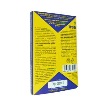 ТРОПИ — универсальный хлопьевидный корм для большинства видов аквариумных рыб: живородящих, цихлид, харациновых, лабиринтовых, карповых, различных сомов и других рыб. При содержании в одном аквариуме рыб, различных по размерам и поведению, вносите корм в нескольких местах, используя плавающие кормушки.