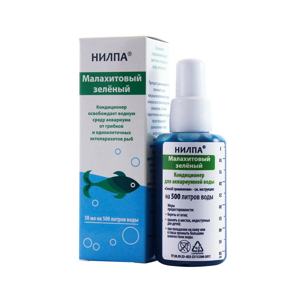 Используется для кондиционирования воды в аквариуме и в карантинных емкостях. Применение кондиционера НИЛПА®«Малахитовый зеленый» делает водную среду безопасной для рыб, так как он препятствует размножению и расселению болезнетворных организмов. Кондиционер можно с осторожностью использовать в аквариумах с растениями (нежные виды могут пострадать) и с водными беспозвоночными, такими как улитки, креветки фильтраторы и креветки Амано.