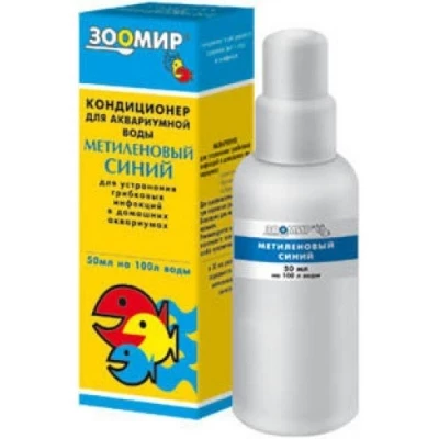 Кондиционер «Метиленовый синий» - раствор метиленового синего - синтетического красителя синего цвета. Кондиционер «Метиленовый синий» предназначен для создания и поддержания в аквариуме безопасной, здоровой среды, препятствующей развитию находящихся в аквариумной воде вредных микроорганизмов, в том числе различных грибков.