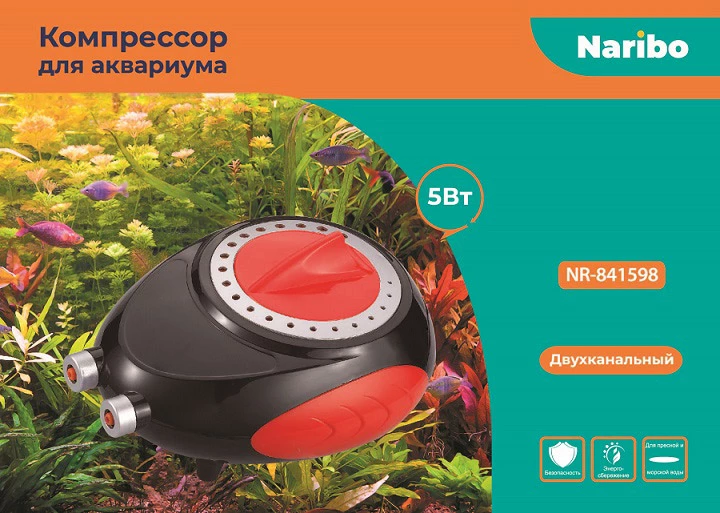 Компрессор предназначен для насыщения воздухом воды в аквариуме.