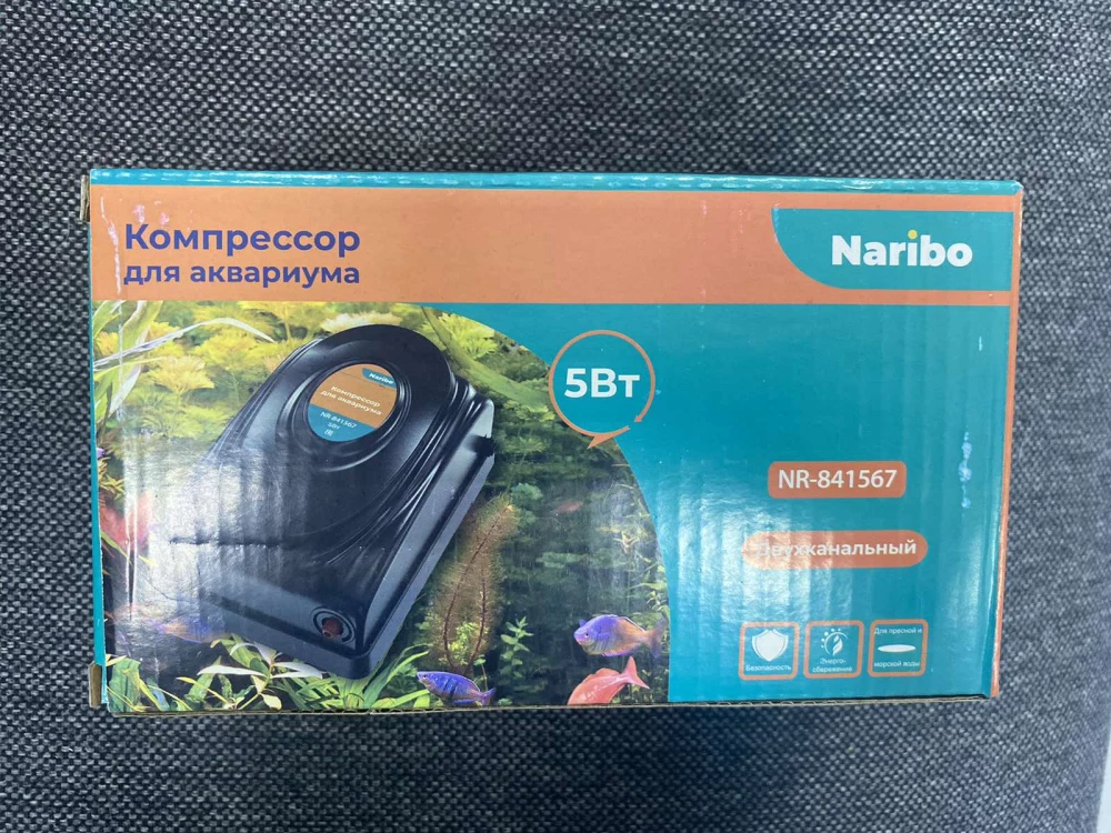 Компрессор мембранный Naribo двухканальный с регулировкой мощности для небольших пресных аквариумов. Работает совместно с системами для аэрации, любыми универсальными распылителями, присоединяемыми тонкими шлангами соответствующего диаметра. Систему также можно дополнить обратным клапаном, при установке прибора ниже уровня воды. Обеспечивает насыщение воды кислородом для обитателей подводного мира. Мощность регулируется незаметной кнопкой на корпусе. Краткие характеристики: Вес: 0,32 кг Габариты: 135*80*50 мм Производительность: 2*4 л/мин Мощность: 5 Вт Регулировка мощности: есть Бренд: Naribo (Китай)