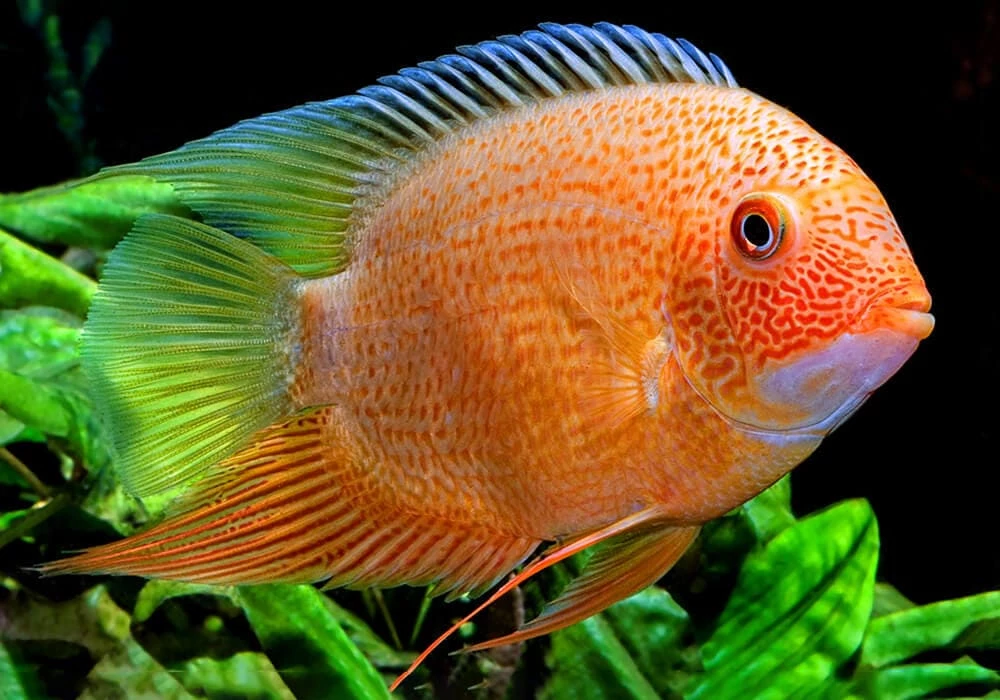 Цихлазома северум – яркий представитель семейства Цихловых. Эти рыбки довольно просты в содержании и ярко окрашены. В аквариумах любителей этого вида можно найти всю палитру оттенков: от солнечного оранжевого до чарующего лазурного. Переплетаясь между собой, красные, желтые и синие искорки сплетаются в сложнейшие узоры – ничего удивительного, что цихлазома северум так популярна среди аквариумистов!