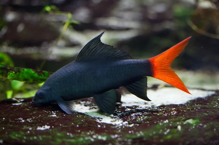 Очень красивая аквариумная рыбка. Первые ее экземпляры попали в Европу в 1952 году, а спустя семь лет – в нашу страну. Тело черного бархатного окраса сильно контрастирует с ярко-красным хвостовым плавником. В аквариуме вырастает до 15 см. Лабео двухцветный отличается территориальным поведением, поэтому в маленьком аквариуме может проявлять агрессию к своим сородичам и другим соседям по аквариуму. Продолжительность жизни – до 15 лет.
