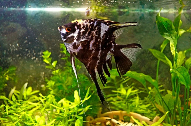 Скалярия мраморная – селекционная форма обыкновенной скалярии (Pterophyllum scalare). Отличительная ее особенность – окраска тела, состоящая из штрихов и пятен неправильной формы, напоминающая разводы на мраморе. Это одна из самых популярных цветовых вариаций скалярии. Рыбки отлично смотрятся в аквариумах с живыми растениями. Наблюдать за столь грациозными рыбками невероятно интересно. А еще они хорошо размножаются в домашних аквариумах и проявляют заботу о своем потомстве. Содержание мраморных скалярий ничем не отличается от содержания других пород.