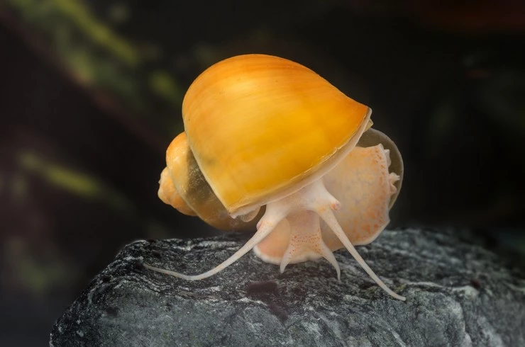 Ампулярии имеют завитую раковину, её окрас зависит от конкретной цветовой вариации. В обычном состоянии у моллюска из-под раковины торчит широкая «нога», с помощью которой улитка передвигается по поверхностям, в том числе вертикальным. Органами осязания являются щупальца. Глаза на тонких ножках желто-золотистого цвета. Помимо осязания, у улитки отлично развито обоняние, позволяющее ей безошибочно находить корм. Раковина снабжена крышечкой, которая называется оперкулюм. В случае опасности улитка прячется в раковину и прикрывает ее устье крышечкой. Это позволяет переносить неблагоприятные условия среды или нападение хищников. Окраска раковин очень разнообразна. Самыми популярными считаются моллюски с желтой раковиной. В последнее время можно встретить голубых, белых и даже практически черных улиток. Классическим вариантом окраса считается полосатый: чередование темных и светлых полос на раковине. Содержать ампулярий можно как в отдельном видовом аквариуме, так и совместно с большинством видов мирных тропических рыб. Ампулярии – крупные улитки, поэтому желательно, чтобы на одну взрослую особь приходилось не менее 10 литров воды. Поэтому для отдельного содержания моллюсков лучше остановиться на аквариумах от 40 литров. Аквариум для ампулярий в обязательном порядке должен быть оборудован крышкой и не иметь крупных технологических отверстий. Улитки, особенно самки в поисках места для кладки, способны вылезать из аквариума, и для них это обычно заканчивается плачевно – ампулярии падают на пол и высыхают, если вовремя их не обнаружить. Максимальное время, которое они способны продержаться без воды, составляет около суток. Также падение с высоты может привести к травмам раковины. Ампулярии в аквариуме с живыми растениями Очень важно организовать в аквариуме с ампуляриями мощную фильтрацию. Улитки довольно прожорливы и оставляют после себя много отходов. Чтобы вода не превратилась в болото, установите мощный фильтр и регулярно делайте подмены воды с сифонкой грунта. Компрессор также необходим для дополнительной аэрации, ведь ампулярии дышат преимущественно растворенным в воде кислородом. Грунт лучше всего использовать песчаный или окатанную гальку, чтобы улитки не повредили свои мягкие ткани. При выборе растений лучше всего остановится на жестколистных видах: анубиасах, криптокоринах, валлиснерии гигантской. Ампулярии – всеядные улитки. И несмотря на то, что в первую очередь они будут обращать внимания на корма животного происхождения, при недостаточном питании могут запросто приняться объедать нежные листочки растений. Оптимальные параметры воды для содержания ампулярий: Т=23-25°C, рН=6.5-7.8, GH=8-18. При низких температурах метаболизм у ампулярий замедляется, и они большую часть времени проводят в «спячке». В теплой воде улитки, наоборот, очень активны, но срок их жизни заметно сокращается. Нельзя содержать ампулярий в очень мягкой воде, ведь для строительства раковины им необходим кальций. Поэтому обнаружив разрушение раковин у моллюсков следует обратить внимание на жесткость воды. Ампулярии способны переносить небольшое повышение солености, если концентрация соли нарастает постепенно. Ампулярий нельзя содержать в мягкой воде Иногда по тем или иным причинам ампулярии погибают. Мертвых улиток желательно как мож