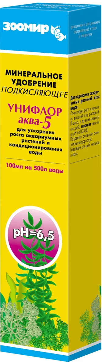 Удобрение рекомендуется применять один раз в неделю, исходя из расчета: 2 мл на каждые 10 литров воды в аквариуме. В качестве мерной емкости можно использовать колпачок флакона, который вмещает приблизительно 5 мл раствора. Необходимое количество удобрения разбавить в 5-10 раз отстоявшейся водой и равномерно разлить по аквариуму. Желательно, чтобы при этом работало какое-либо перемешивающее устройство. Если в фильтрационной системе аквариума есть активированный уголь, то на первые двое суток после внесения удобрения его необходимо удалить. После достижения требуемой величины рН рекомендуется перейти на нейтральное удобрение “Унифлор-аква-7”.