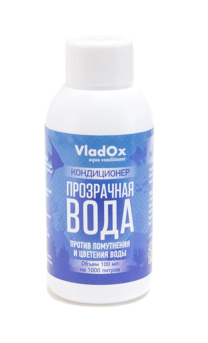 Кондиционер VladOx ПРОЗРАЧНАЯ ВОДА предназначен для устранения помутнения и цветения воды в декоративном аквариуме, позволяет добиться исключительной прозрачности воды. В состав кондиционера входит самый современный коагулянт на основе соединений алюминия, входящего в состав природной глины, который не только эффективно очищает воду, но и безопасен для всех обитателей аквариума. Кондиционер связывает мелкие частицы в крупные образования, которые впоследствии удерживаются субстратом механического фильтра или оседают на дно.