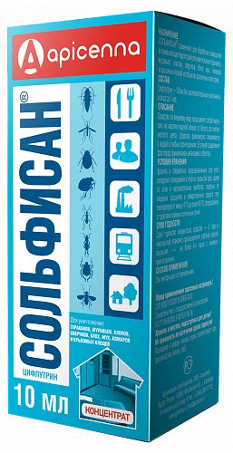 Концентрат Сольфисан для уничтожения насекомых (мух, комаров, клопов) 10мл