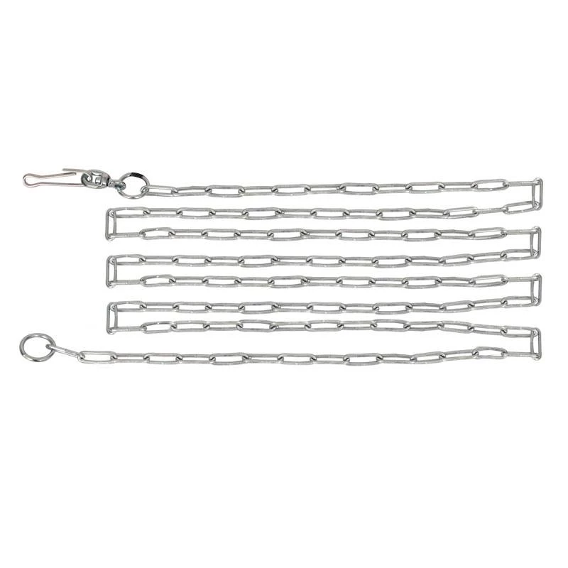 Эта стальная привязочная цепь для собак способна выдерживать рывки до 200 кг. Прочная и долговечная, она имеет надежное крепление и карабин, который обеспечит быстрое закрепление цепи на той территории, где необходимо обеспечить охрану. Расположенное с другого конца изделия кольцо можно закрепить на вбитом в землю штопор-держателе или импровизированном столбе. Также кольцо можно надеть на трос, вдоль которого собака будет свободно передвигаться, значительно увеличивая доступную для охраны площадь. Диаметр проволоки - 4мм, длина - 2800мм.