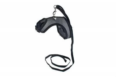 Эластичный поводок с карабином и бубенчиком! Шлейка дышащая регулируемая.