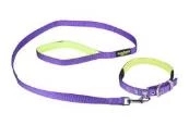 Отличительной особенностью данного комплекта является наличие на поводке амортизирующей резинки "потяг" и дополнительной ручки, для быстрой фиксации питомца. Все изделие прошито светоотражающими нитями, что создает неординарность и в то же время безопасность во время вечерних прогулок. Изделия изготовлены из полиэстера и нейлона, что делает их прочными и мягкими одновременно.