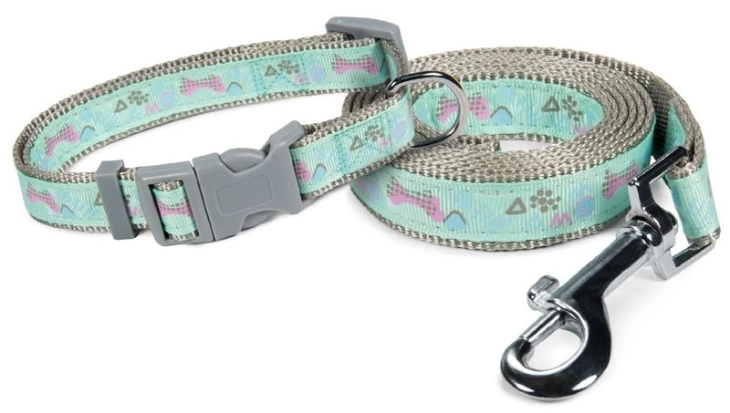 Прочный и функциональный комплект с аппликацией на шелковистой поверхности состоит из ошейника и поводка, выполненных в единой стилистике в приглушенных тонах. Комплект изготовлен из высококачественного нейлона с использованием крепкой металлической и пластиковой фурнитуры. Длина ошейника регулируется, сбоку от застежки имеется удобное кольцо для крепления поводка.