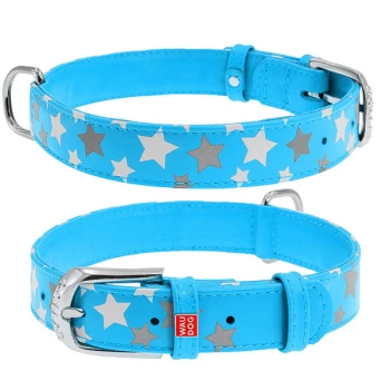 Яркий ошейник COLLAR WAUDOG GLAMOUR с узором "Звездочка" со светоотражающим и светонакапливающим рисунком для повседневных прогулок. Изготовлен из мягкой, натуральной и качественной кожи. Обладает высокой прочностью, стойкостью к атмосферным осадкам.