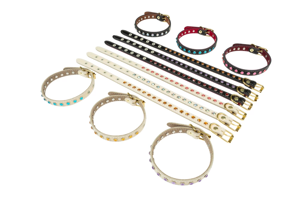 Ошейник для собак из кожи со стразами 25-34см
