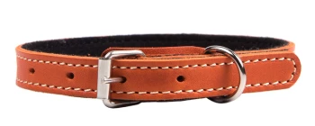 Ширина: 14 см Обхват шеи: 24-34 см Однослойный ошейник из натуральной кожи, подшитый фетром, украшенный металлическими заклепками, полукольцо у пряжки. *Реальный цвет изделия может отличаться от цвета изделия на фото
