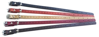 Ширина: 14 мм Обхват шеи: 24-34 см х 14 мм Однослойный фигурный ошейник из натуральной кожи, с фактурным тиснением, не прошитый, полукольцо у пряжки. *Реальный цвет изделия может отличаться от цвета изделия на фото