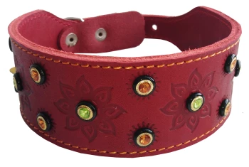 Стильный двухслойный ошейник-борзятник из натуральной кожи, проклеен, прошит декоративной строчкой, украшен стразами и тиснением, полукольцо у пряжки.