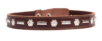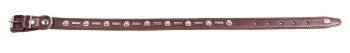 Ширина: 25 мм Обхват шеи: 55-66 см Двухслойный ошейник из натуральной кожи с металлическими украшениями, проклеен, прошит декоративной строчкой, полукольцо у пряжки. *Реальный цвет изделия может отличаться от цвета изделия на фото